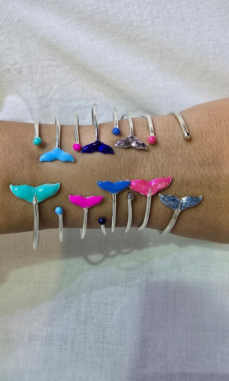 این بنگل زیبا با طرح نمادین دم نهنگ طراحی شده حس آرامش دریا و آزادی را همراه خود دارد. دم وال با تکنیک مینا کاری رنگی ساخته شده که جلوه ای براق ، شفاف و ماندگار به آن می دهد.